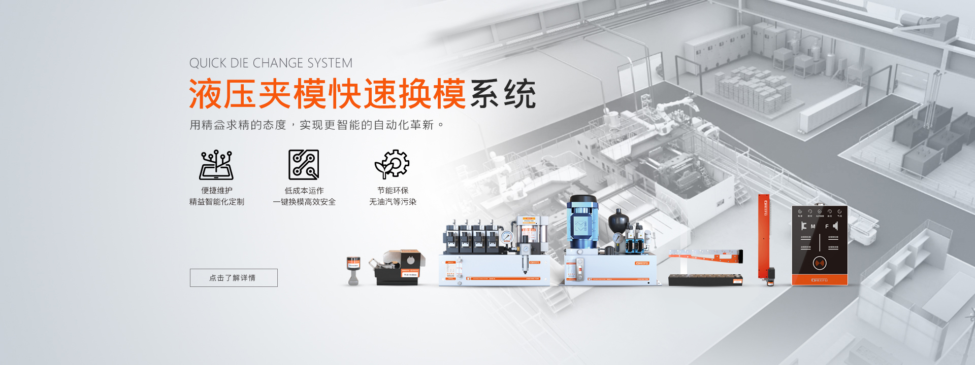 液壓快速換模系統(tǒng) 格萊富注塑機快速換模系統(tǒng)采用 TY 夾模器,以油壓驅(qū)動取代舊式固定夾的方式,不需要在模產(chǎn)過程中,短時間內(nèi)輕易完成換模作業(yè),更省時省力。目前已在家電,汽車、機械等行業(yè)豐富應用